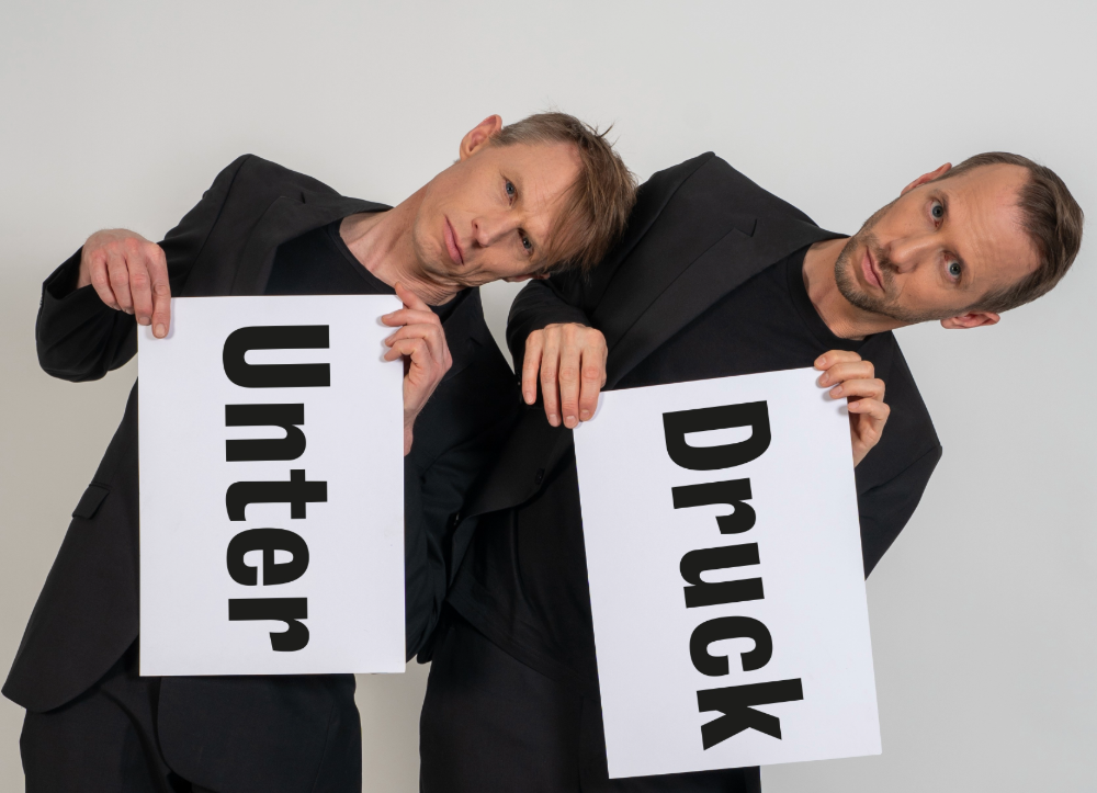 Das Duo gerät ob der Erwartungen der Sprechenden gehörig unter Druck. Die absurden und unterhaltsamen Wortgefechte entblössen ganz neue und private Seiten der beiden Blattländer. Ein kollektiver Lesegenuss von gehobenem Blöd & Sinn. Und das Publikum vollendet den Sound des Abends im Kopf.